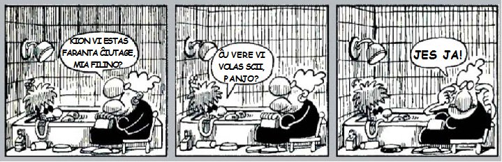 - Silenta alvoko, ĉu?! - protestis Stilulo. - Vi tuj enmetu min tien aŭ mi denuncos vin al la Societo Protektanta de Bestoj!